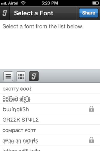 Cool Fonts is a free iPhone app. As the name of the app suggests, it provides you with different fonts to write your messages in. The app allows you to update your Facebook, Twitter status right from the app with your message displayed in the selected cool font.