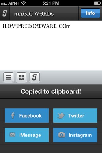 The info button on top right corner just shows you a pop up message with information on how to paste or use the text in various places. Another great thing is that as you can paste the text anywhere, you can change the name of you contacts and make them appear in a certain font using this app. You can also use this font to change your bio and profile fields in social networking websites.
