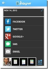 All the albums in the app are in thumbnail view. You can easily scroll the albums in upward and downward direction and all the photos in your new iPhone’s photo gallery. Moreover, Flayvr app also allows you to share any album via email, Facebook, Twitter, and more. The app sends the web link of that album. Just click on the link and you will find the album shared in the same view as it was on your iPhone.
