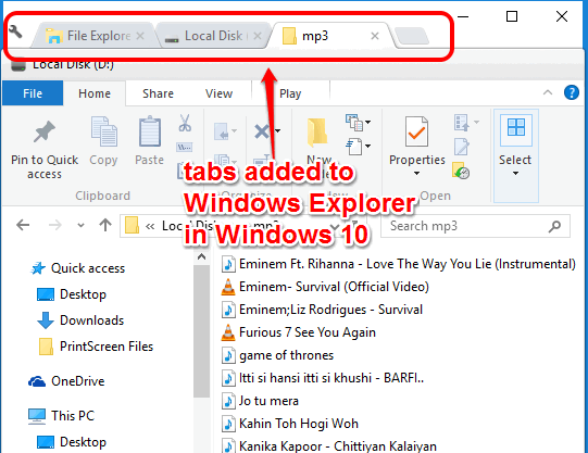 The screenshot above shows tabs opened by me in Windows Explorer of Windows 10.