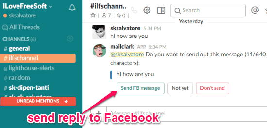 In the same manner, you can reply to all the Facebook messages directly from Slack. Remember, you can only reply to 50 Facebook messages in the free version of MailClark.