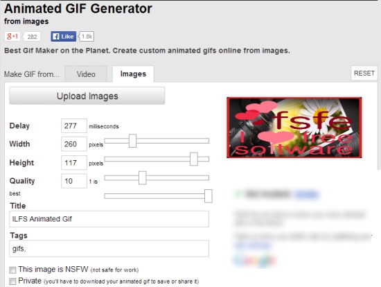 Screenshot above shows a quick animated gif created with images using Animated GIF Generator. Another good thing about Animated GIF Generator is that no sign up is required to use it. However to delete the uploaded gif from imgflip.com, you need to create an account.