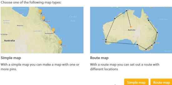 You will also see an option for adding a map when you click on the grey blank area. Click on make a map option, which will bring up the window seen in the screenshot below. Choose the type of map you want to make.