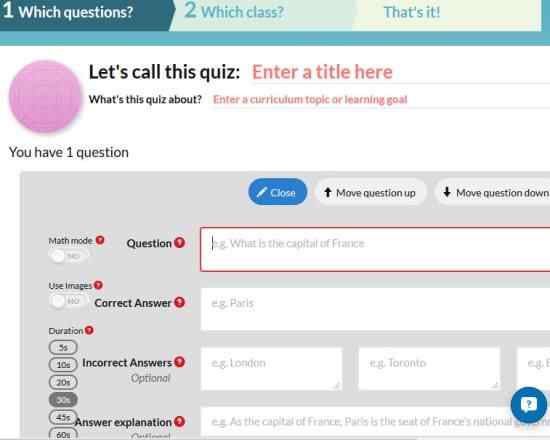 After this click on add a new question button. Now enter your question, then enter the correct answer, then enter three incorrect options if it is a multiple choice question. Write a small explanation for the correct answer. On the left side to this you can choose to turn math mode on or off, and use of images can be turned on or off. Apart from this you can also set the duration of the question from 5 seconds to 60 seconds.