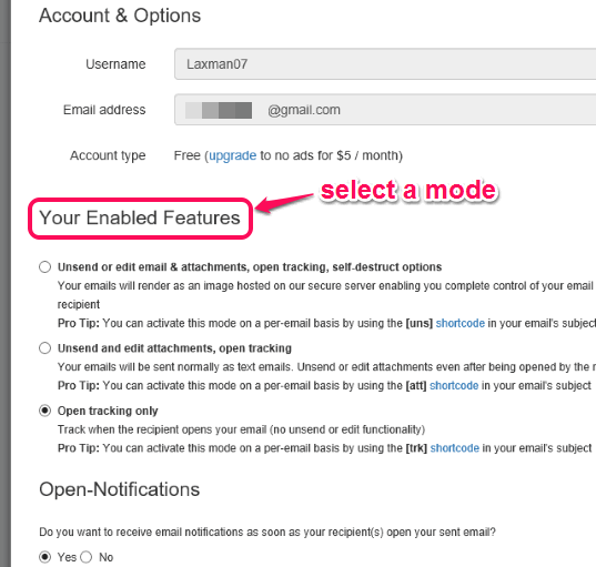 • Option to get email notification when an email is opened by the recipient is also available.