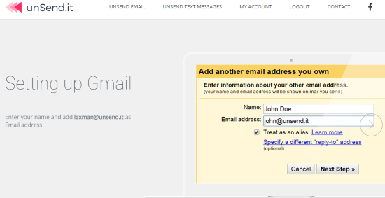 There is no time-limit to undo or delete a sent email using this service. Moreover, it supports Gmail, Outlook, AOL, etc. You can configure any of the supported email client(s) to use this service and compose and send a message from its interface. Although you use this service to send the emails, but the receiver will see your original email id.
