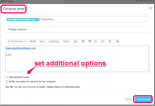 All the features are available for free. However, it shows an “Sent via unSend.it” in the signature part, which can be removed after upgrading to the premium subscription. If it doesn’t bother you, then this service is really good to undo your sent emails.