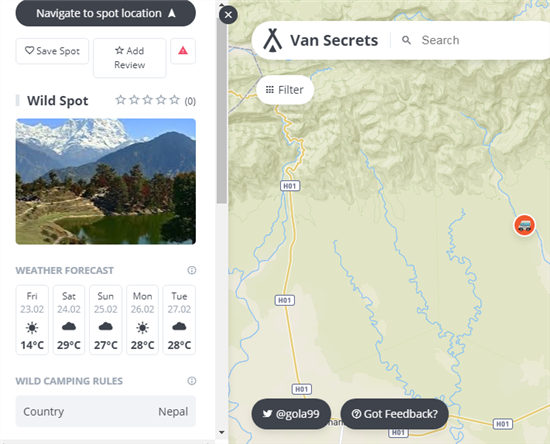 Van Secrets is an web application which is meant to find free camping sites on a map. The campsites can be filtered depending on Country, Location, and various facilities available. This is an open application where users can make their own addition and contribute to the general community. The interface is simple and easy to use which makes this application really popular among backpackers around the world.