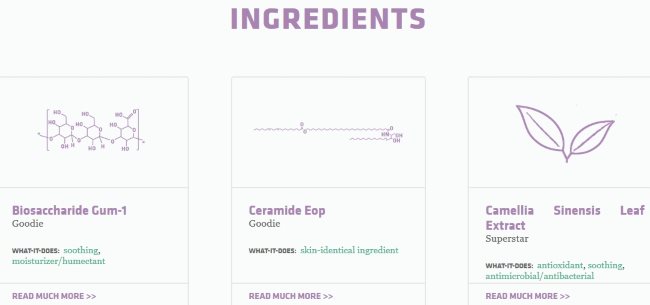 The third section on the homepage is ingredients. The screenshot of this page can be seen below.