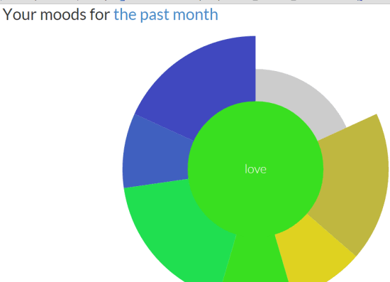 In above screenshot, you can see pie chart that shows categories of my moods for different days. You first need to sign up for free with this website and then it will start recording your mood.