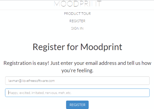 Go to the homepage of this website using the link present at the end of this review. Register yourself with your email id and current mood (say happy, excited, or anything else). After this, you will receive a confirmation email using which you can activate your Moodprint account.