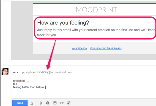 Once your account is activated, it will send you an email alert about how you are feeling? You need to reply to that email with your current mood. Extra comment can also be added to that reply. For example, if you are replying Happy, then you can add comment about why are you happy at this time.
