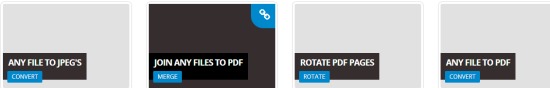 Online PDF Tools is a multipurpose service that lets you convert any file to pdf, merge files to create pdf, rotate pdf pages, and convert any file to jpg. Thus, four different utilities are packed in a single and completely free service. If you want to join word file, text file, an image, html, or Photoshop files together, you can use Join any files to PDF tool of Online PDF Tools. Moreover, if you want to quickly convert any kind of file to pdf, then you can select available tool for it.