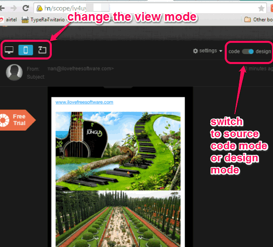 Step 8: Share the email link with anyone you want. When he/she will open the URL, that person can read the email with desktop and mobile preview. People can also see the source code of email.
