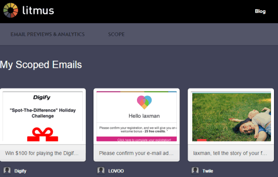 Step 9: To view all the scoped emails, you can access your Litmus Scope account. It will show the thumbnails of all scoped emails. You can also delete any email, whenever needed.