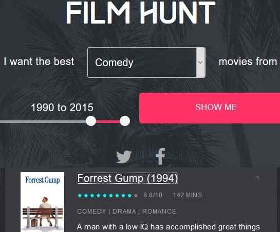 When you think of a good movie to watch, there is hardly anything which pops in to your mind. Specially when you want to watch a good movie in a particular genre like comedy, action, sci-fi, etc. This is where Film Hunt helps you out. Film Hunt is a free website which will search and find the best movies in a given period of time. For example, if you want to know the best movies from 1990-2000 in a particular genre then this website will show this to you easily.