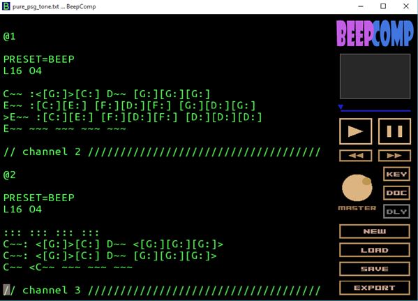 BeepComp is a chiptune music creator software that’s very simplistic, but still very powerful. Instead of relying on complex menus and lots of options, BeepComp relies on code. See image above.