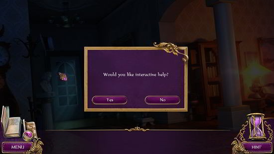 If you choose to start the tutorial, you will be briefly guided through the game’s controls. The game has a diary to keep track of objectives, inventory at the bottom of the screen and a hint button at the bottom right which allows you to highlight the active areas when you get stuck somewhere. You can get up close with a highlighted object to investigate a scene like so…