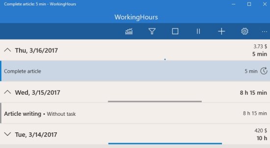 WorkingHours is a Windows 10 time sheet / time tracking app for keeping a track of your working hours. The app provides you with a simple interface to keep track of the hours that you have been working. The app can prove to be good for freelancers, hourly workers, or anyone who is paid on the amount of time they have worked for.
