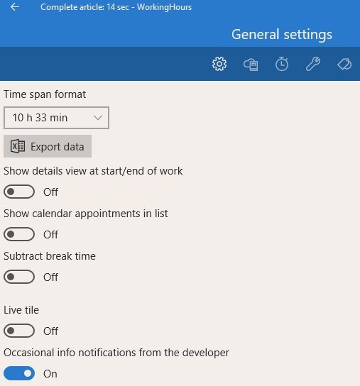 Similarly, you can view the graph for working hours as well. The settings option in the app lets you make a few changes. The settings window is shown in the screenshot below.