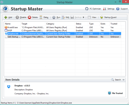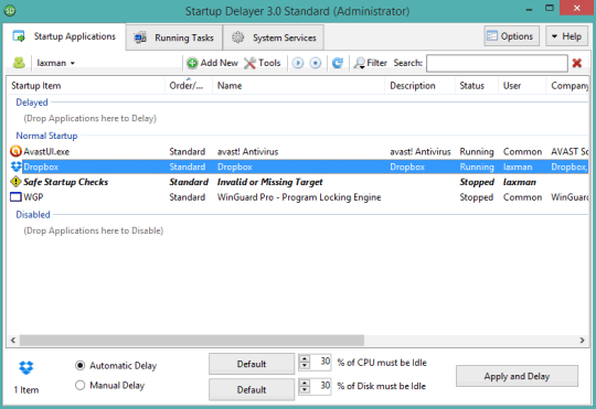 Startup Master is very useful to set delay time of all startup programs as well as disable unwanted programs. You can also delete any program from startup list. So, it can be used as both startup delayer and as startup manager software.