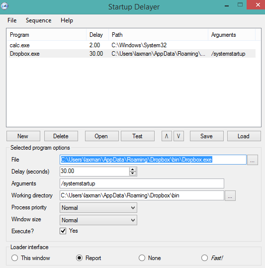Startup Delayer (by JokerSoft) is the last software in this list. It is also a good startup programs’ delayer which lets you import startup programs and set delay time (in seconds). What makes it unique than above mentioned software is you can test the launch of startup programs with delay time. That means, you will be able to preview the startup of programs in the sequence that you have set them to launch.