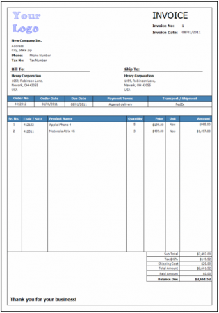 Crave Invoice is a software to create invoices suitable for a business of small to medium size. You can create professional looking invoices, quotations, purchase orders, sales orders etc. All of these activities can be performed for multiple companies. You can also keep a track of payments received from the customer or if any advanced payments were received. You will be able to manage your product inventory using this software as well. Here is a screenshot of a sample invoice created using Crave Invoice: