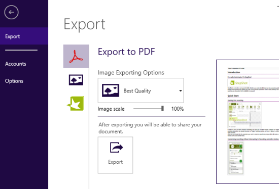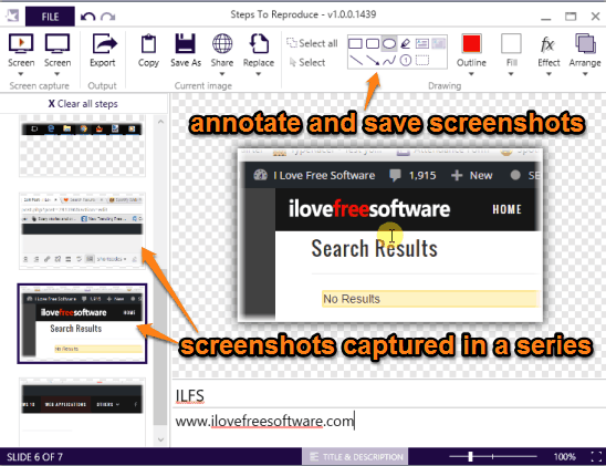 Steps To Reproduce is a free screen capture software that lets you capture series of screenshots using mouse clicks. It is not just another ordinary screenshot capture utility as pretty good and unique features come with it. You can capture series of screenshots for an active window, active screen, or a specific area and save the whole series as a single PDF file.