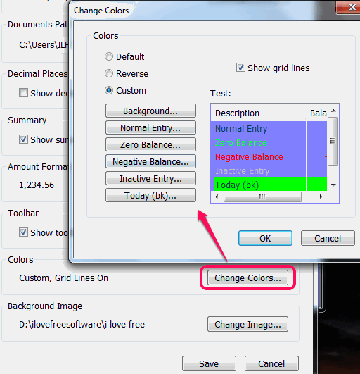 - For each different entry, it also lets you set any of your favorite color. In Preferences window, click on Change Colors button, and set colors.