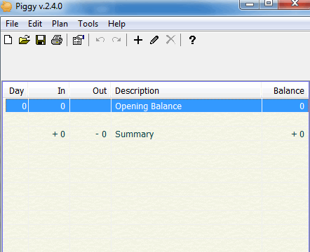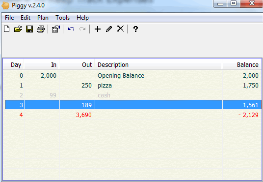 Piggy is a very simple software and comes with user-friendly interface. There are total 5 columns present on its interface: Day, In, Out, Description, and Balance.