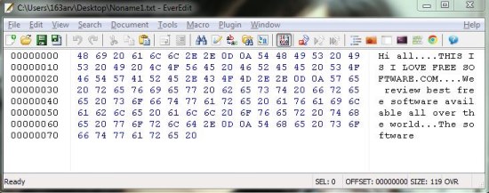 EverEdit is a lightweight and handy text editor that offers a bunch of useful tools for file editing. Apart from plain text editing, it supports source code and binary file editing and allows you to open and edit files in its simple hex editor.