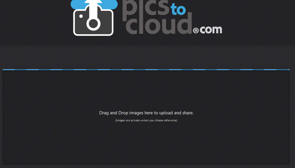 When you open up the PicsToCloud website you’re gonna see a pretty barren screen, which doesn’t have the standard Browse button with which you could open images for upload, which can be seen on a lot of other image hosts. Instead of that, all that waits for you is a small rectangular box with a text to drag and drop images onto the box for the upload to start and that’s what we did.