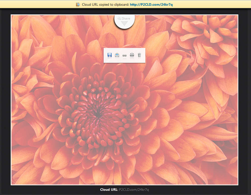 Uploading large images is never an easy task, because a lot of image hosts have size limits, with PicsToCloud all of that’s in the past, because you can upload very large images, several at times and then simply generate share links or use the provided social network share buttons to share photos with your friends. If you don’t want images online, you can delete them, simply open the image, hover your mouse over it and the delete button should appear in the list of options available on hover. Try this free image hosting service.