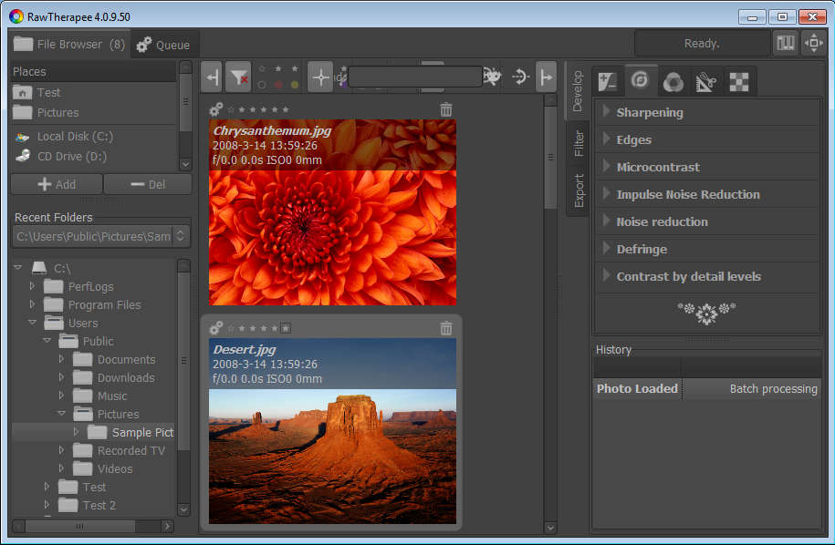 Batch raw image processing with RawTherapee