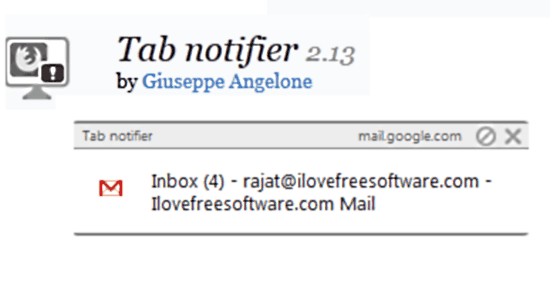 Pretty cool, isn’t it? As illustrated by the animated graphic above, Tab Notifier automatically springs up a notification message the moment it detects any activity on the monitored website (Gmail, in this case).