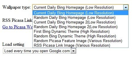 Apart from showing image from Bing, this extension can also show random featured image from Picasa. If you want to pull images from Picasa related to your favorite search term (like, “Sunrise”), you can just provide RSS feed of that Picasa search, and this will pull images from that feed and will show as background of Google.com.