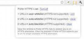 Prefer HTTPS is a free security extension for Chrome. Prefer HTTPS always try to load websites in HTTPS to make your browsing more secure and safe. Prefer HTTPS automatically detects the HTTPS availability and switch to them. You can easily customize the Prefer HTTPS by On/Off switch and other options to create a white list of the websites. Prefer HTTPS perfectly works with facebook, twitter and many other sites which supports HTTPS.
