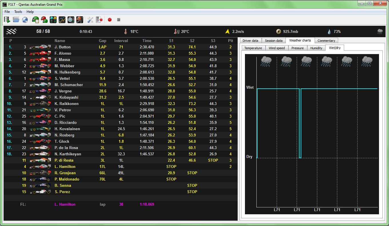 F1LT free live timing software is perfect for Formula One commentators, even live tracking is available. If you are a formula one fan and aficionado this is something that you must not miss. Free download.