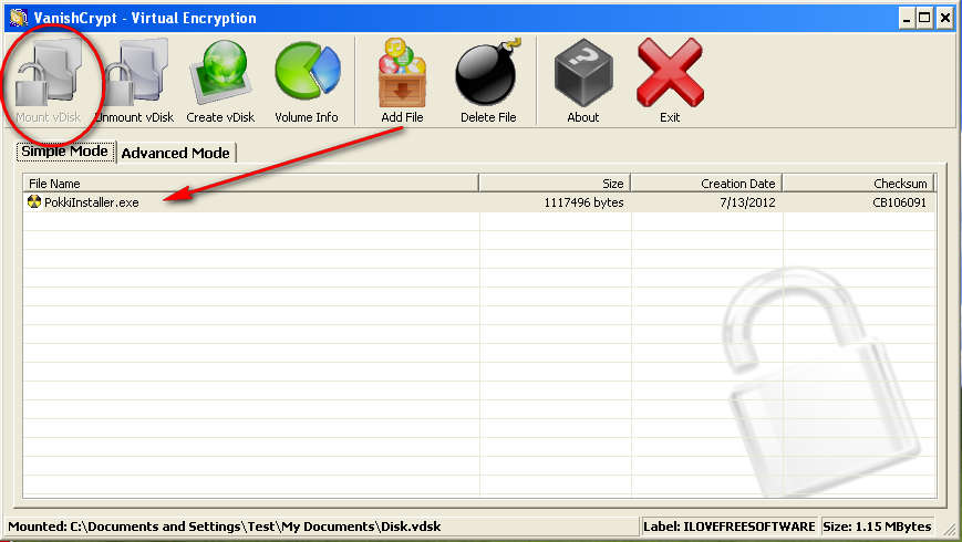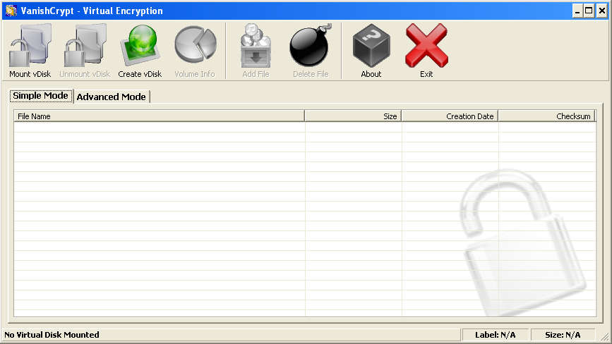 When you’re finished adding files, make sure that you click on the Unmount vDisk option at the top menu, which will close the virtual disk file, after which the password is required to open it once again. Vanish Crypt is free, use it if you’re looking for file encryption software.