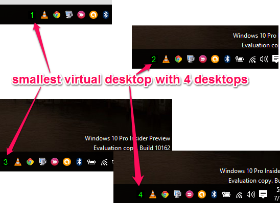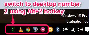 In the screenshot above, you can see system tray of my PC with numbers to show which desktop I am currently using. Guys, this is the only thing I can show you related to this software. It doesn’t have any interface, content menu, or configuration settings window.