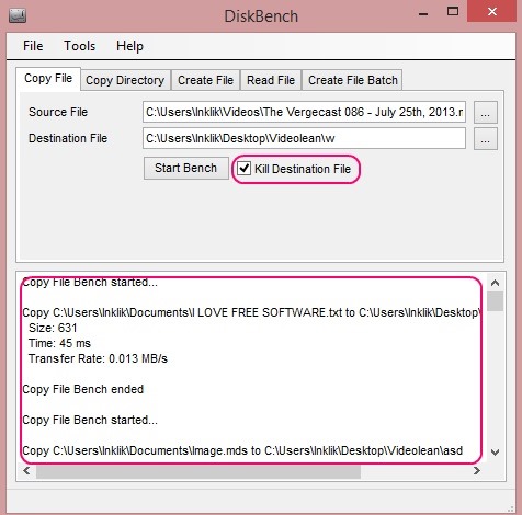 The interface looks very easy, and it won’t take much time for you to understand working on it. The tests that you can put onto your hard disk are arranged in the form of toggle tabs, with each having respective specifications for the test. The toggle consist of: Copy File, Copy Directory, Create File, Read File, and Create File Batch. The freeware gives the report of each single test in an easy to understand format. You can then copy-paste these reports and save them in any text file.