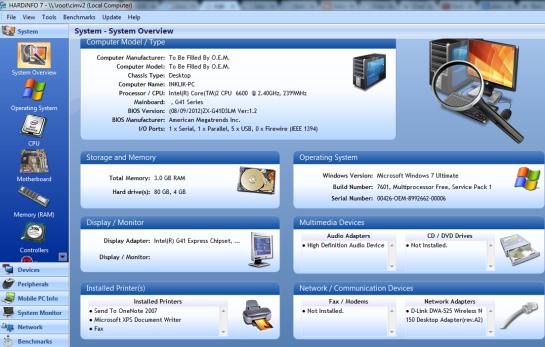 System Information Viewer With Hardware Benchmarks Facility: HARDiNFO