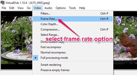 VirtualDub is a free video processing tool which allows you to resize videos, apply video filters, compress videos, change video color depth, and more. Apart from these features, it also comes with the option to create slow motion videos from image sequences by changing the frame rate.