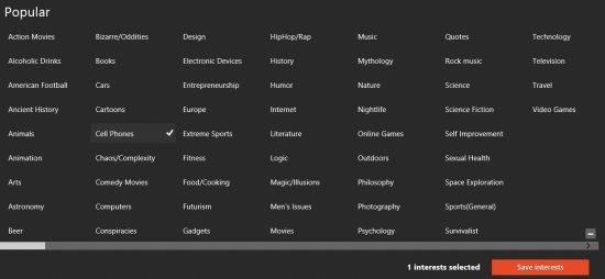 This StumbleUpon app has an amazing interface and simple browsing options. If you are interested in reading and would like to find all your interests at one place, then StumbleUpon App for Windows 8 is a good solution. You can browse through your interests, likes, trending topics, and other activities.