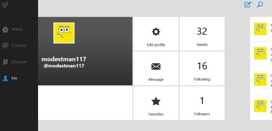 This app has been well integrated with the Windows 8 features and style of the interface. The app has different pages for home, connections, discover, and profile that can be accessed by clicking on the buttons that are located on the extreme left part of the interface.