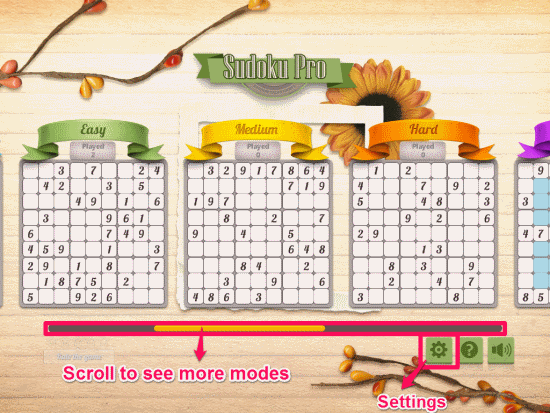 Sudoku Pro is a new version of the old classical Sudoku. After launching the game you will find below mentioned different modes on the home screen: