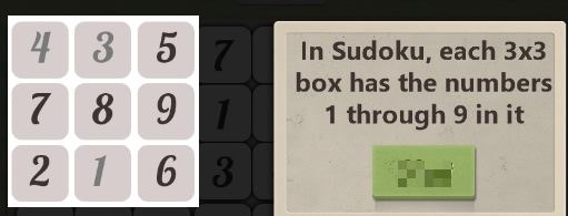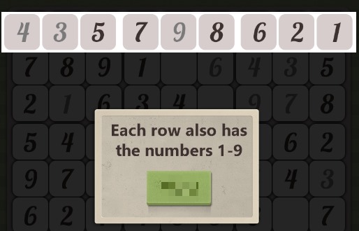 - Different colors to highlight the block you are filling and relevant rows and columns.