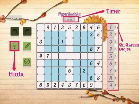 You can even undo/redo your steps. If you are not able to fill any particular block with correct digit then you an take hints also.