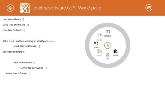 Working for the HTML, Rich Text Format, and TXT, is quite same. Clicking on these opens a blank plain sheet upon which you can write what ever you want. These works like a simple plain text app. You just have to type and click on the A icon button again. Doing this gives you simple text formatting options including: undo, redo, cut, copy, paste, and select all. One good thing about the app is you can also use their default keyboard shortcuts. Hence, making the app faster. Right clicking on any of these file types screen gives you options to save, and open a new or existing file.