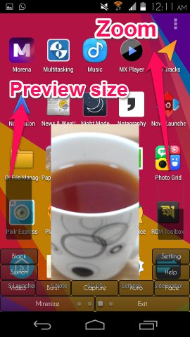 You can increase or decrease the preview size simply by using the rectangle located on the right. The rectangle of the left is responsible for zooming in and out. Simply tap on the rectangle and slide your finger up or down to control zoom or the preview size.